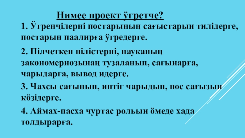 2. Пілчеткен пілістерні, науканыӊ закономернозынаӊ тузаланып, сағынарға, чарыдарға, вывод идерге.