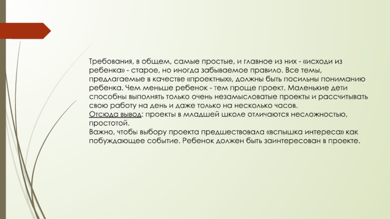 Слайд 6Требования к проектной деятельности младших школьников во многом отличаются от идеи