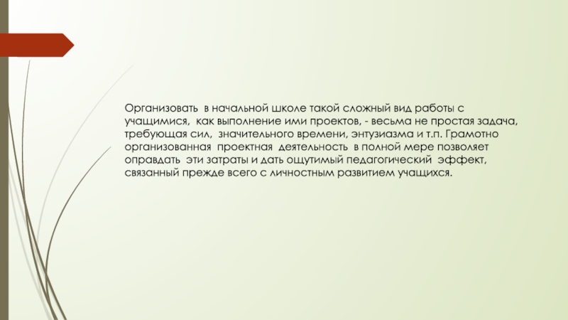 Слайд 4Организовать в начальной школе такой сложный вид работы с учащимися, как