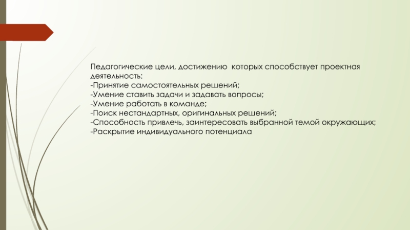 Слайд 5Педагогические цели, достижению которых способствует проектная деятельность:
