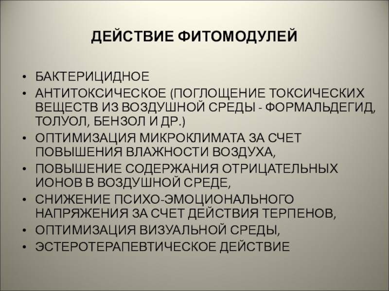 Слайд 18ДЕЙСТВИЕ ФИТОМОДУЛЕЙ