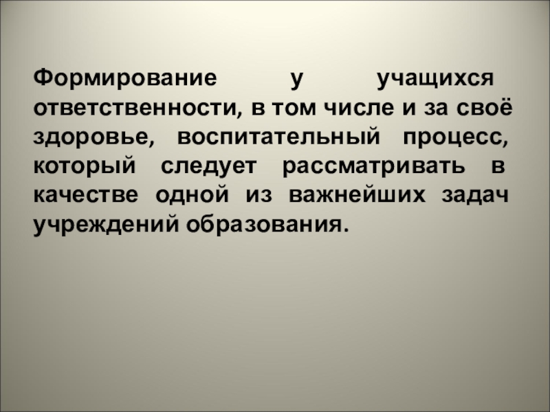 Формирование у учащихся ответственности, в том числе и за своё здоровье,