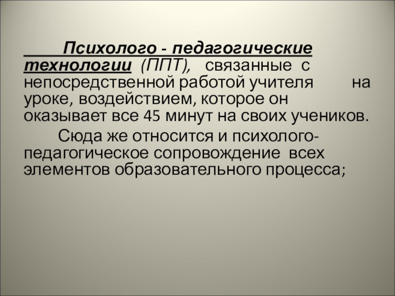 Сюда же относится и психолого-педагогическое сопровождение всех элементов образовательного процесса;