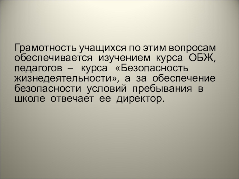 курса «Безопасность жизнедеятельности», а за обеспечение безопасности условий пребывания в школе отвечает ее директор.