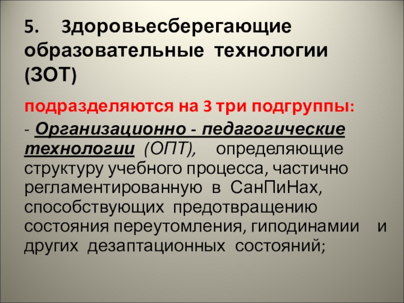 5. 3доровьесберегающие образовательные технологии (ЗОТ)