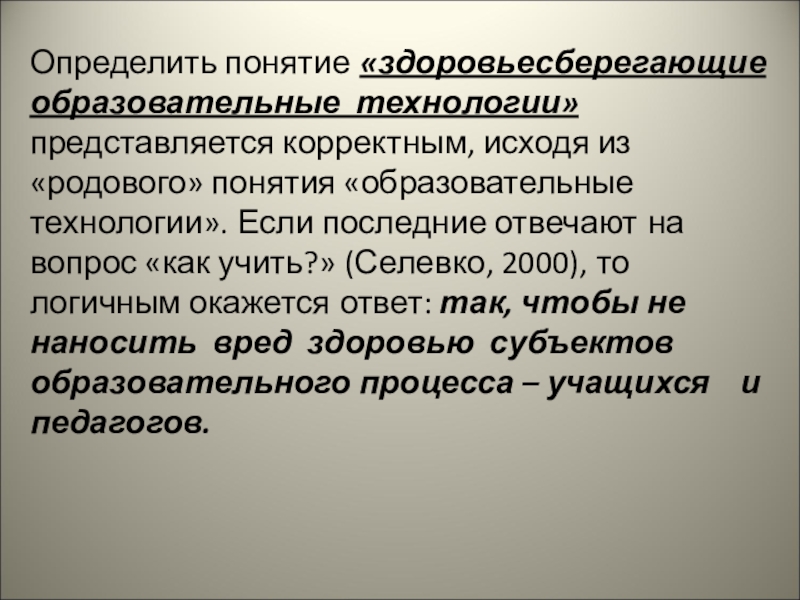 Слайд 5Определить понятие «здоровьесберегающие образовательные технологии» представляется корректным, исходя из «родового»