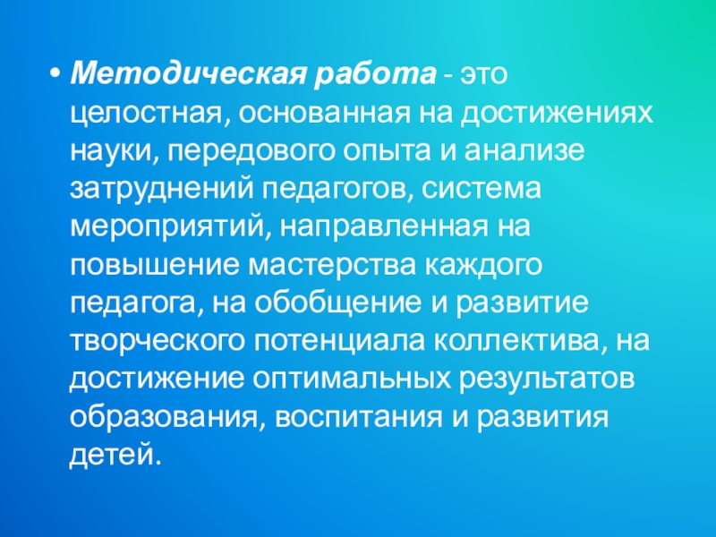 Слайд 2Методическая работа - это целостная, основанная на достижениях науки, передового опыта