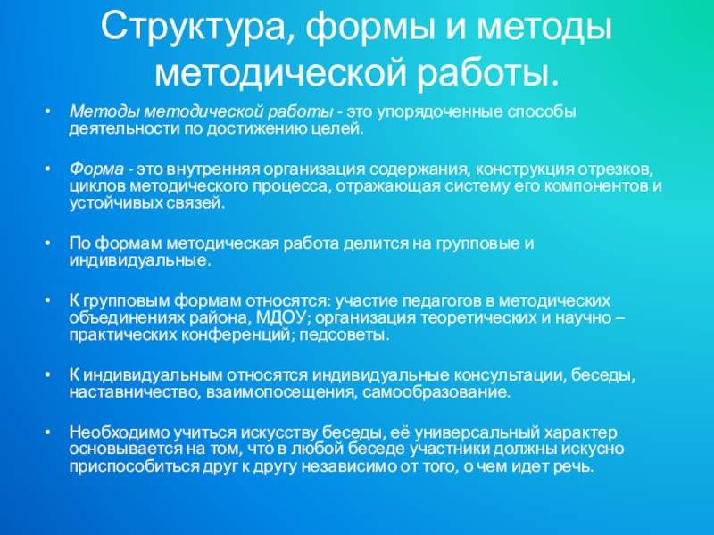 Слайд 19Структура, формы и методы методической работы.