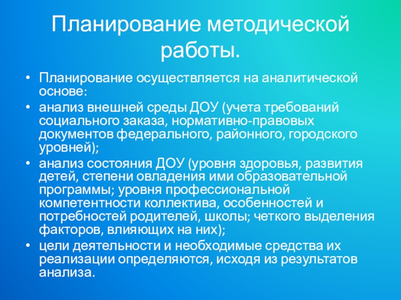 Планирование осуществляется на аналитической основе: