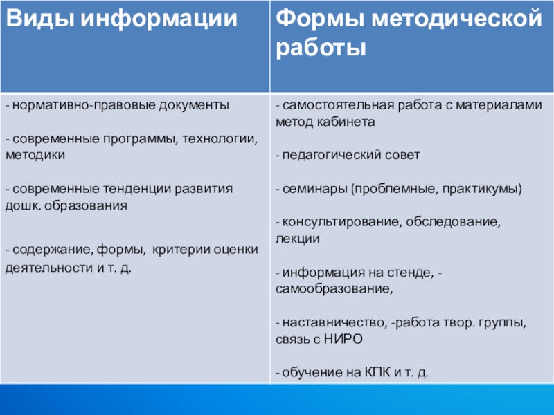 Обзор видов информации и форм методической работы представлен в схеме :