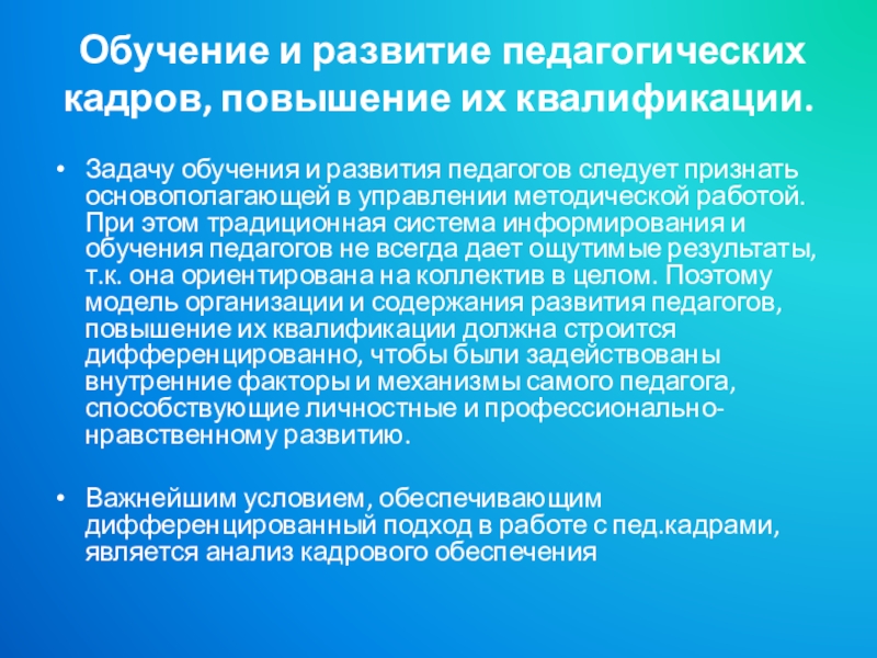 Слайд 51. Обучение и развитие педагогических кадров, управление повышением их квалификации.