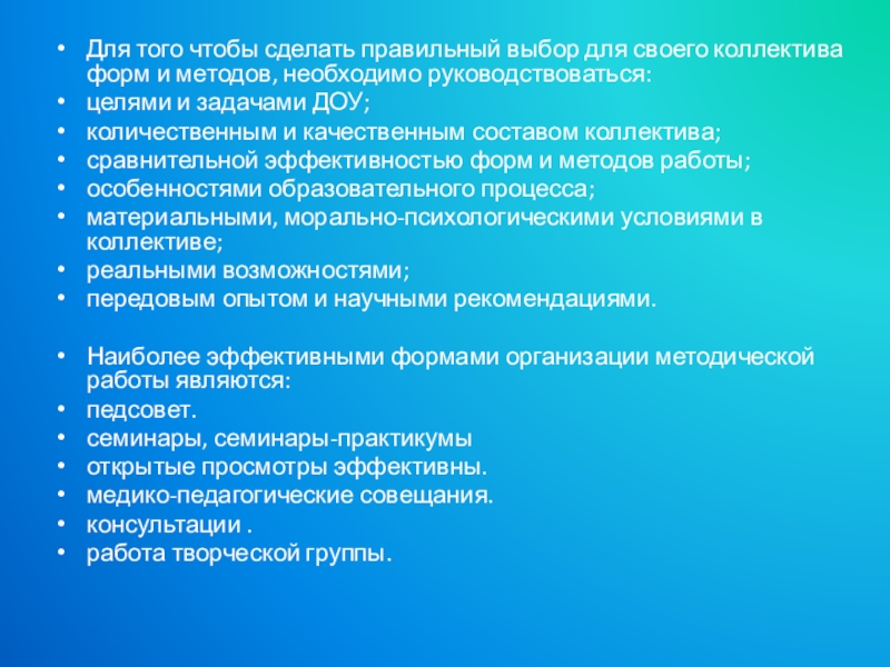 Слайд 20Для того чтобы сделать правильный выбор для своего коллектива форм и
