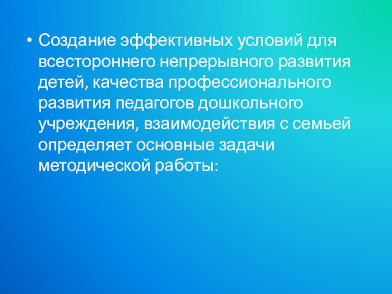 педагогов дошкольного учреждения, взаимодействия с семьей определяет основные задачи методической работы: