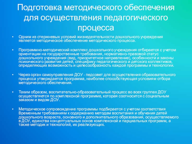 Слайд 17Подготовка методического обеспечения для осуществления педагогического процесса