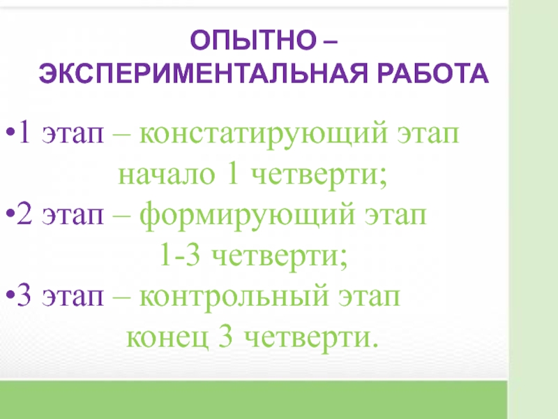 ОПЫТНО – ЭКСПЕРИМЕНТАЛЬНАЯ РАБОТА