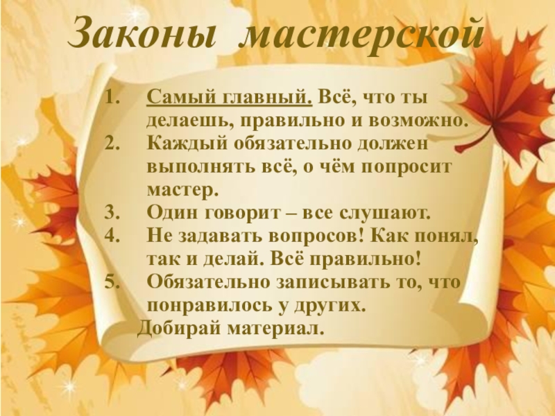 обязательно должен выполнять всё, о чём попросит мастер.