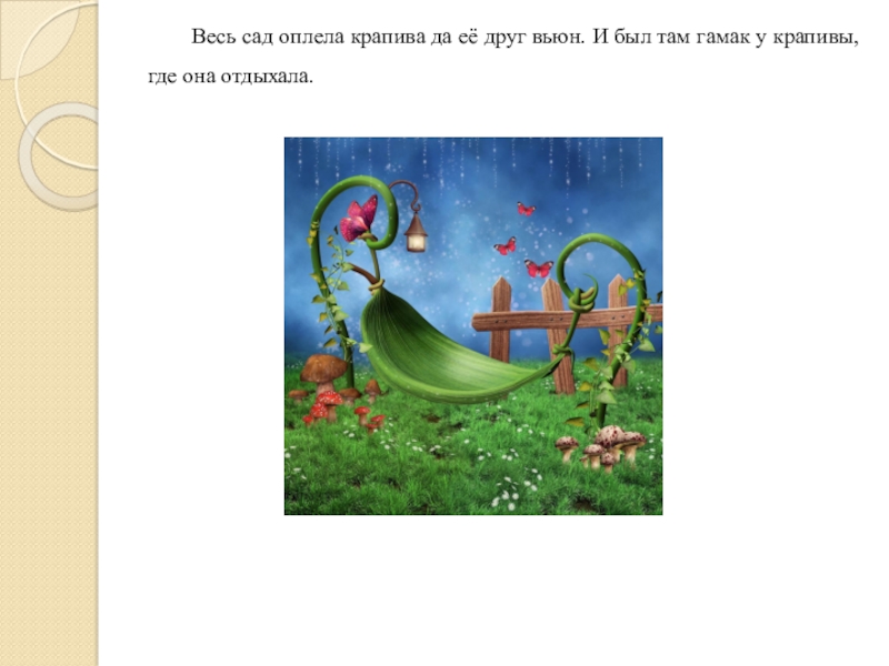 Слайд 23Весь сад оплела крапива да её друг вьюн. И был там