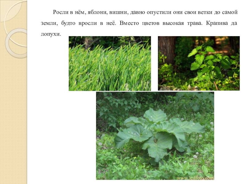 Слайд 20Росли в нём, яблони, вишни, давно опустили они свои ветки до