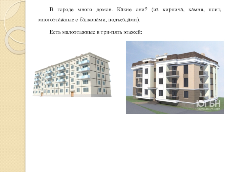 Слайд 5В городе много домов. Какие они? (из кирпича, камня, плит, многоэтажные
