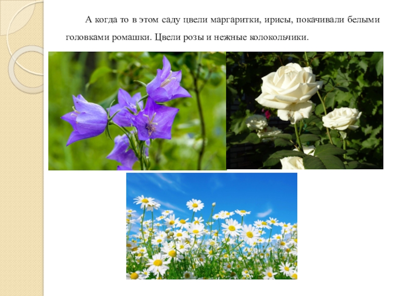 Слайд 24А когда то в этом саду цвели маргаритки, ирисы, покачивали белыми