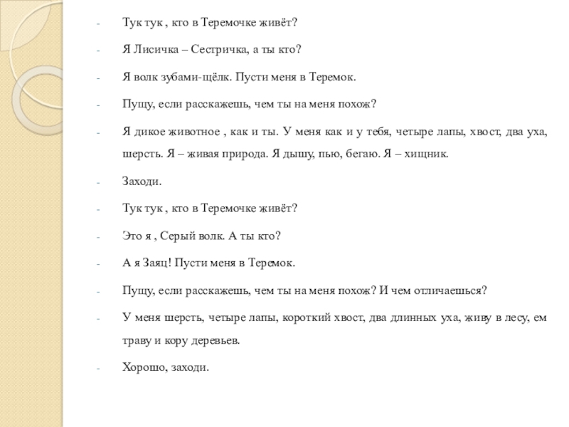 Я волк зубами-щёлк. Пусти меня в Теремок.