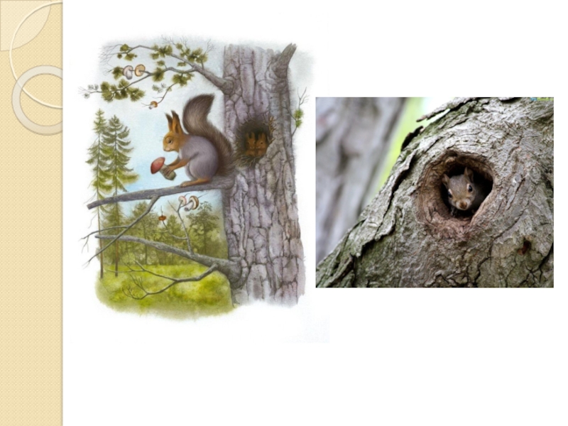 Я Белка, меньше тебя зайца, меньше волка и лисы, но я пушистая, бываю серой, как заяц весной и рыжей, как лиса летом. У меня четыре лапы, хвост, два уха с кисточками. Живу на дереве. Питаюсь грибами и орехами.