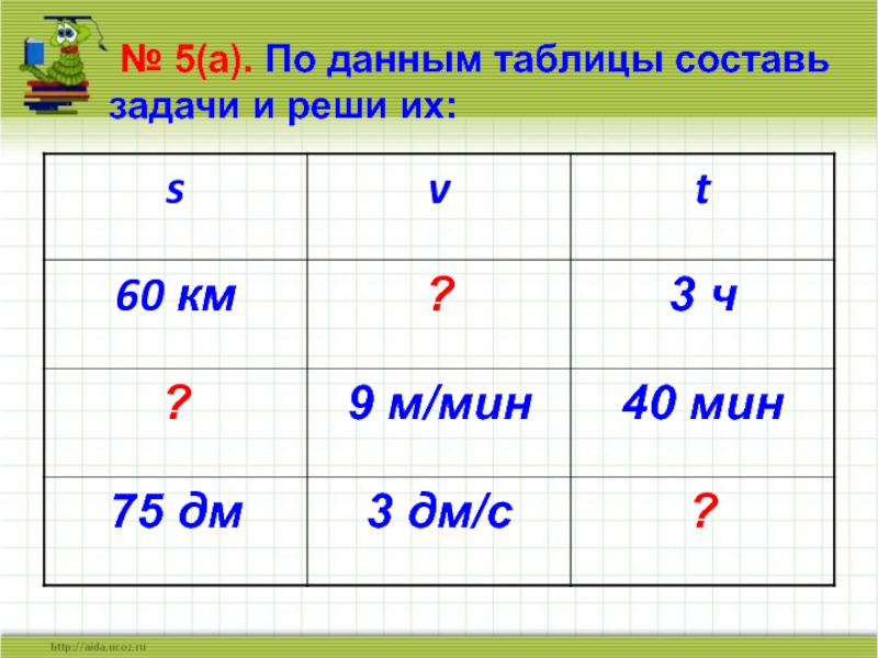 Слайд 10 № 5(а). По данным таблицы составь задачи и реши их: