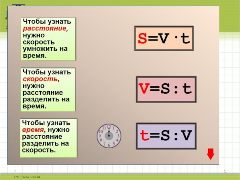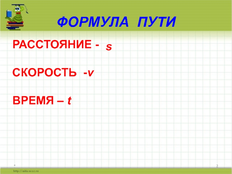ФОРМУЛА ПУТИ*РАССТОЯНИЕ - СКОРОСТЬ -vВРЕМЯ – ts