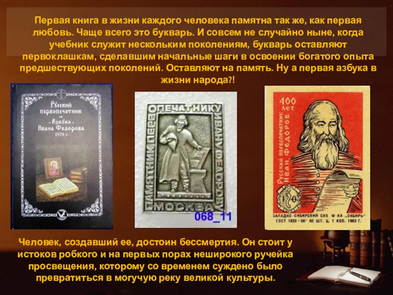 Слайд 32Первая книга в жизни каждого человека памятна так же, как первая
