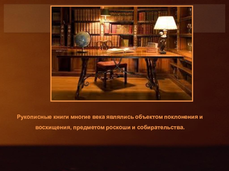 Слайд 10Рукописные книги многие века являлись объектом поклонения и восхищения, предметом роскоши