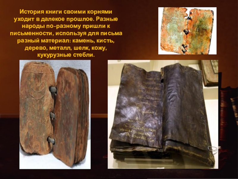 Слайд 4История книги своими корнями уходит в далекое прошлое. Разные народы по-разному