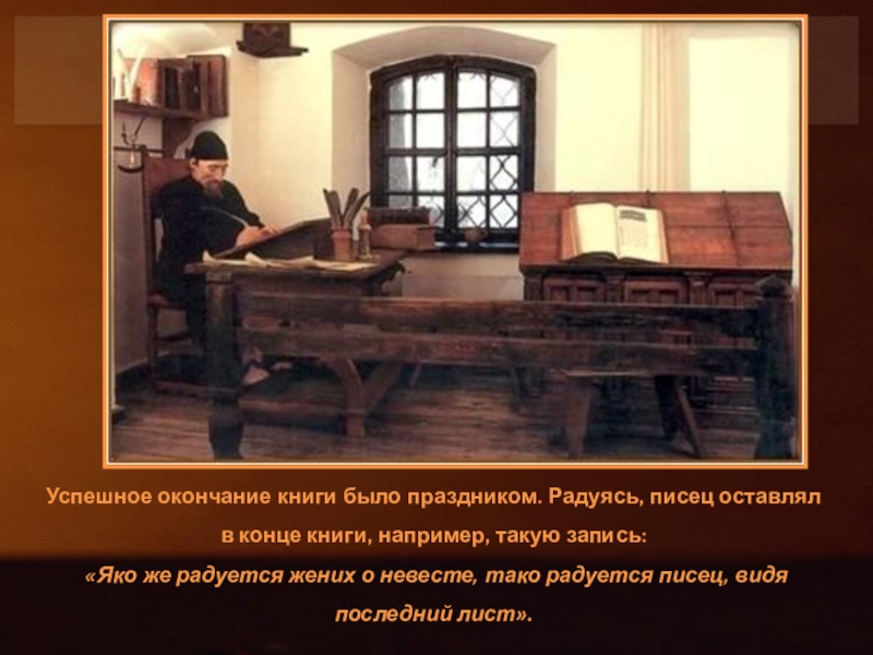 Слайд 9Успешное окончание книги было праздником. Радуясь, писец оставлял в конце книги,