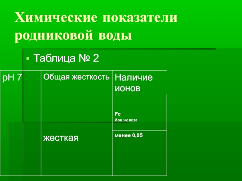 Слайд 17Химические показатели родниковой воды