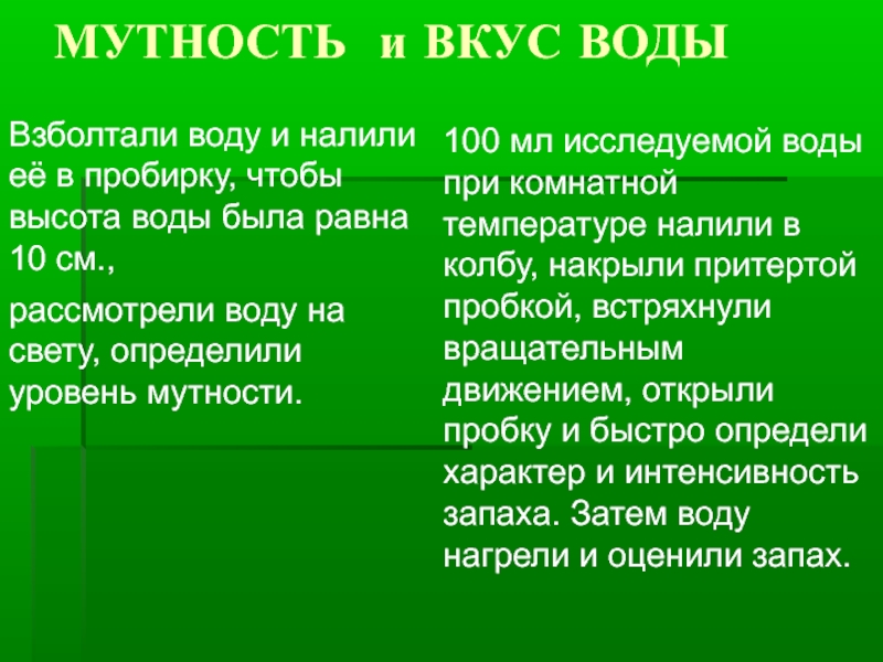 Слайд 11МУТНОСТЬ и ВКУС ВОДЫ