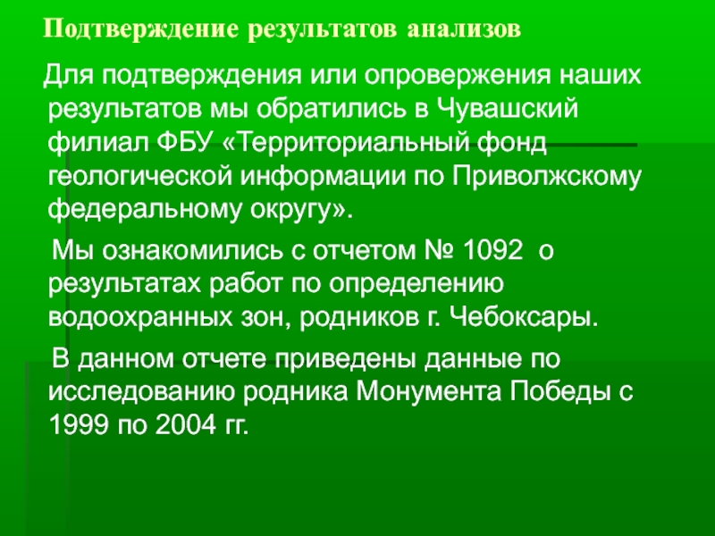 Мы ознакомились с отчетом № 1092 о результатах работ по определению водоохранных зон, родников г. Чебоксары.