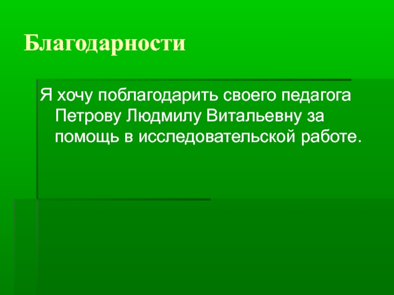 Я хочу поблагодарить своего педагога Петрову Людмилу Витальевну за помощь в