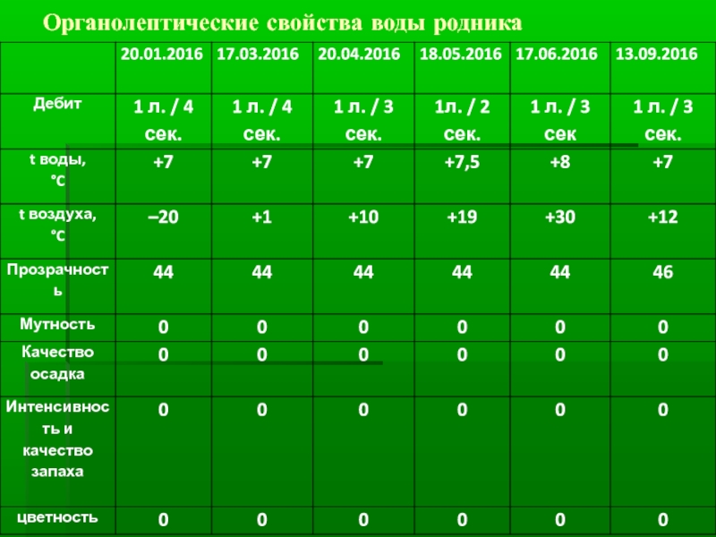 Слайд 12Органолептические свойства воды родника