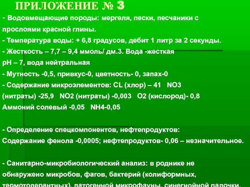 4. Найти данные об анализе воды в роднике в предыдущие годы