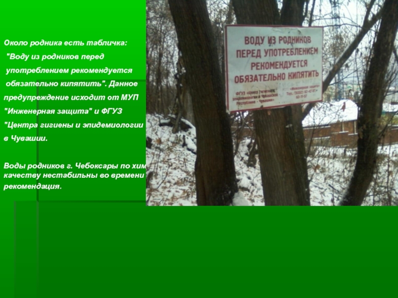 Воды родников г. Чебоксары по химическому составу и качеству нестабильны во времени и отсюда данная рекомендация.