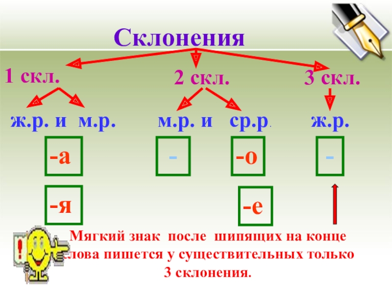 падежных окончаний имен сущест-вительных 1,2,3 склонения в единствен-ном числе