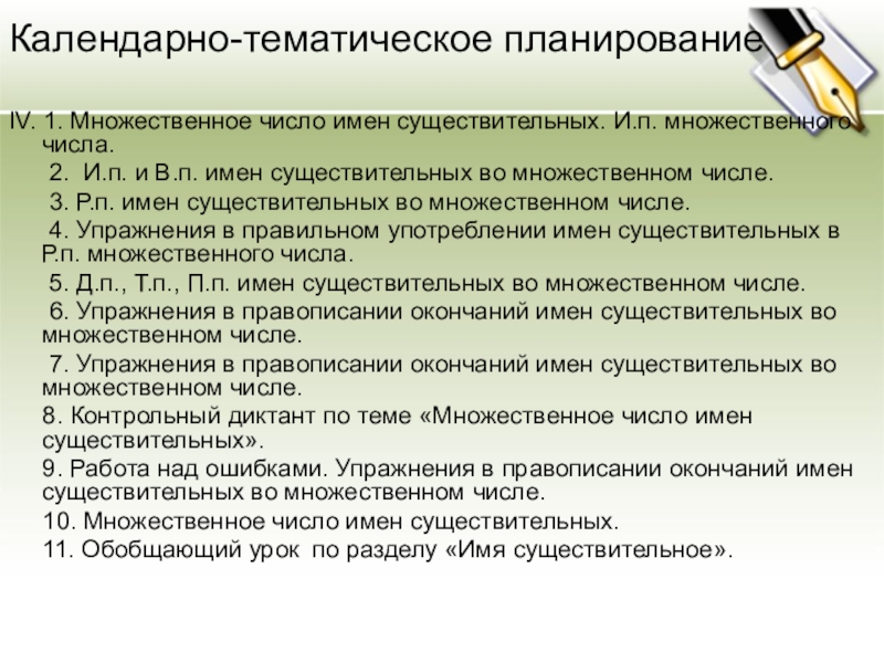 Склонение и правописание имен сущест-вительных во множест-венном числе