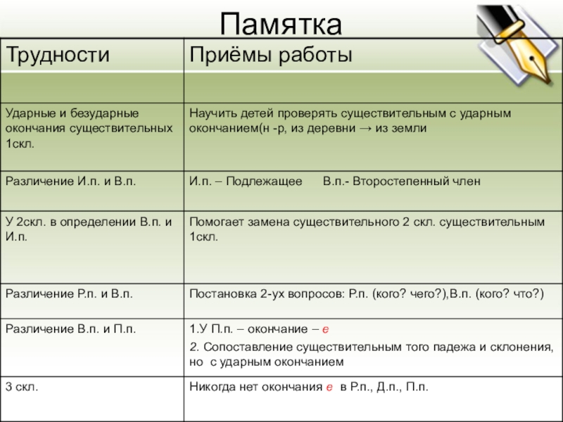 навыка правописания безударных падежных окончаний имен существительных в единственном и во множественном числе.