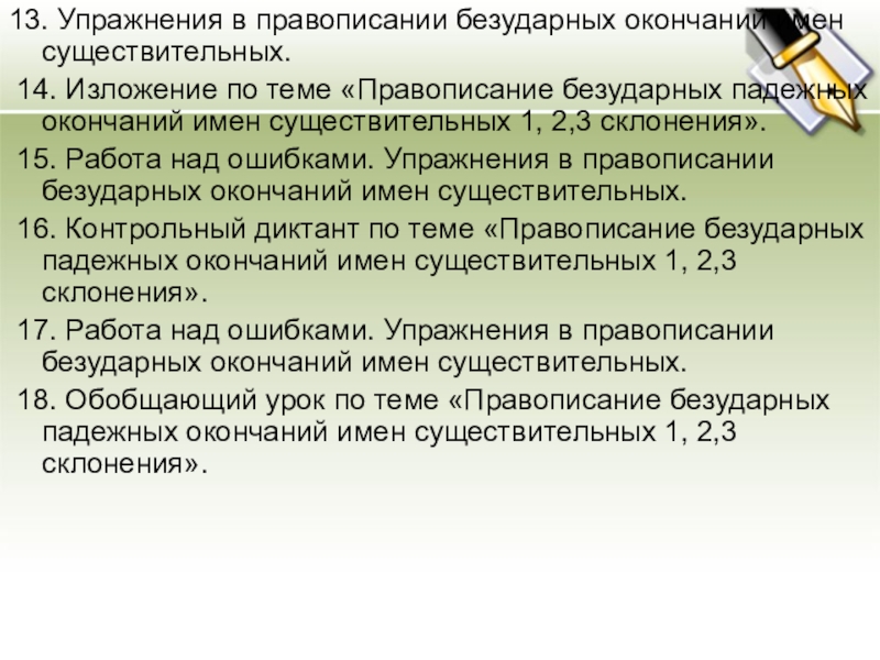 13. Контрольный диктант по теме «Склонение имен существительных».
