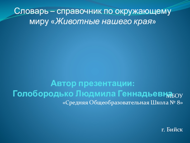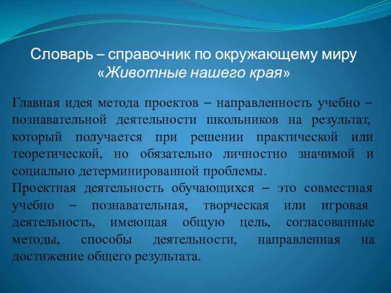 Создать словарь – справочник по окружающему миру «Животные нашего края»