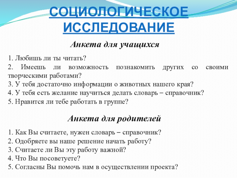 Анкета для родителей