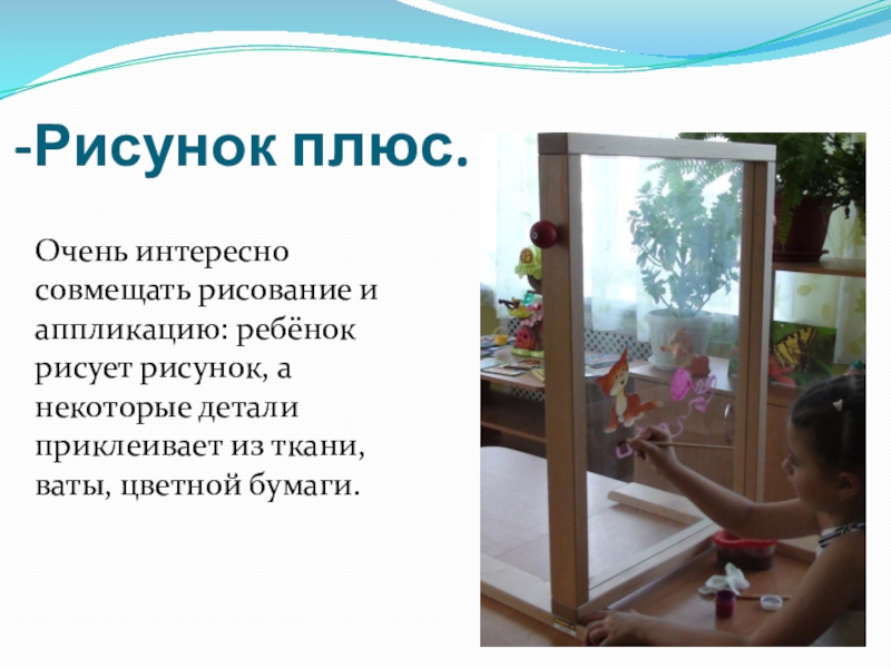 Очень интересно совмещать рисование и аппликацию: ребёнок рисует рисунок, а некоторые