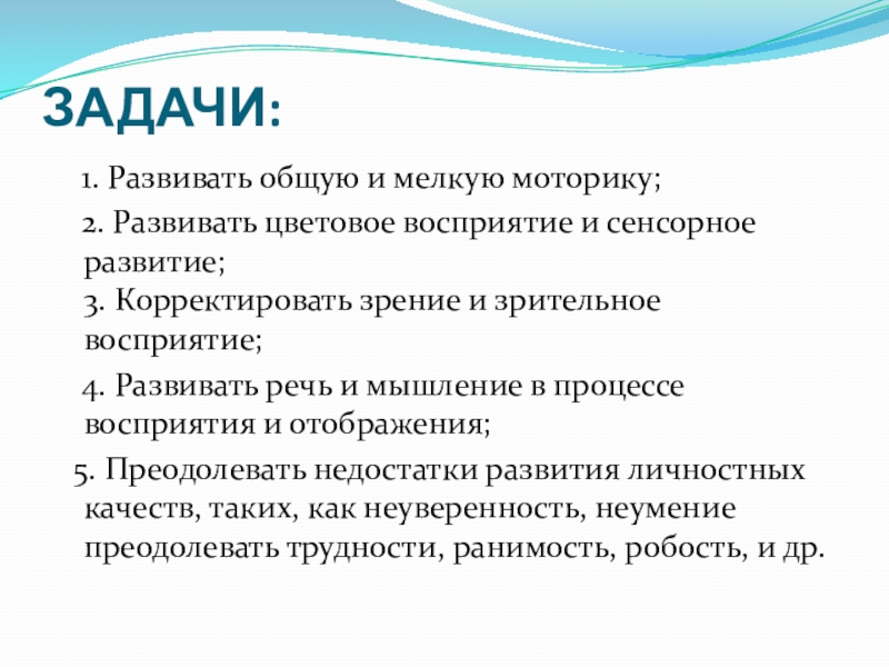5. Преодолевать недостатки развития личностных качеств, таких, как неуверенность, неумение преодолевать трудности, ранимость, робость, и др.