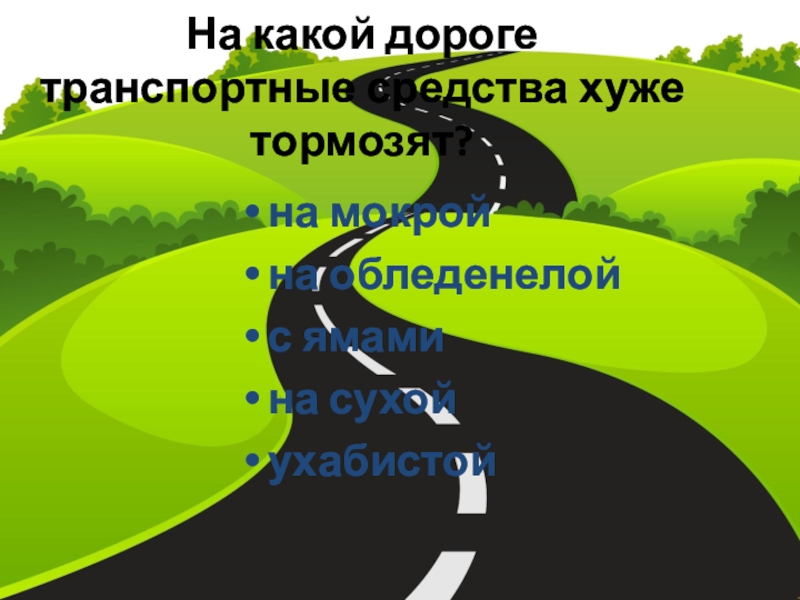 Слайд 4На какой дороге транспортные средства хуже тормозят?