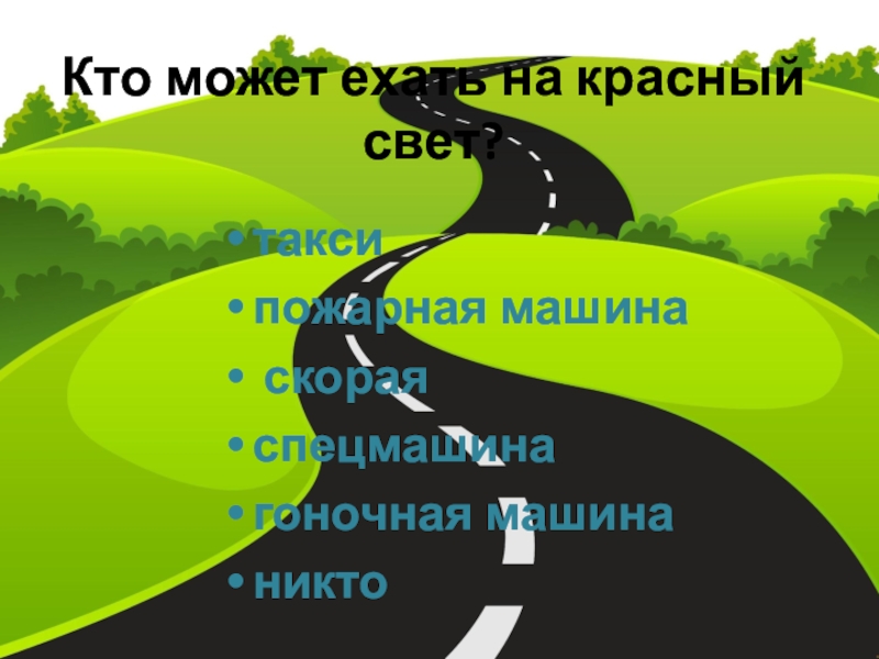 Кто может ехать на красный свет?таксипожарная машина скораяспецмашинагоночная машинаникто