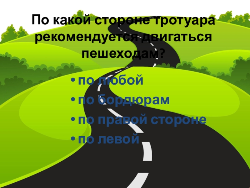 Слайд 8По какой стороне тротуара рекомендуется двигаться пешеходам?